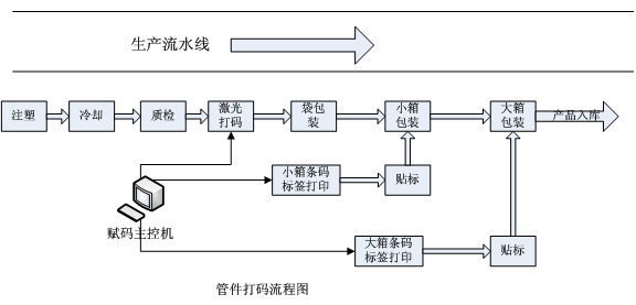 2. 管件通過激光打碼的方式,每個管件上打印一個防偽防竄貨碼。管材通過油墨噴碼或者激光打碼的方式,每個管材上打印三個防偽防竄貨碼。